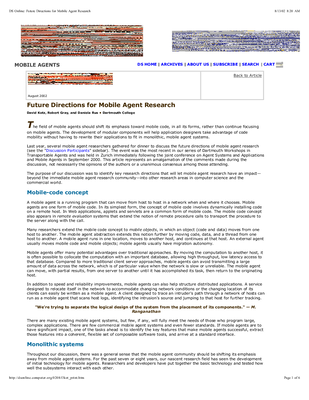 Citable with [BibTeX]: \cite{kotz:dwta} Projects: [dagents] Keywords: [agents] [privacy] [security] [survey] Available from the author: